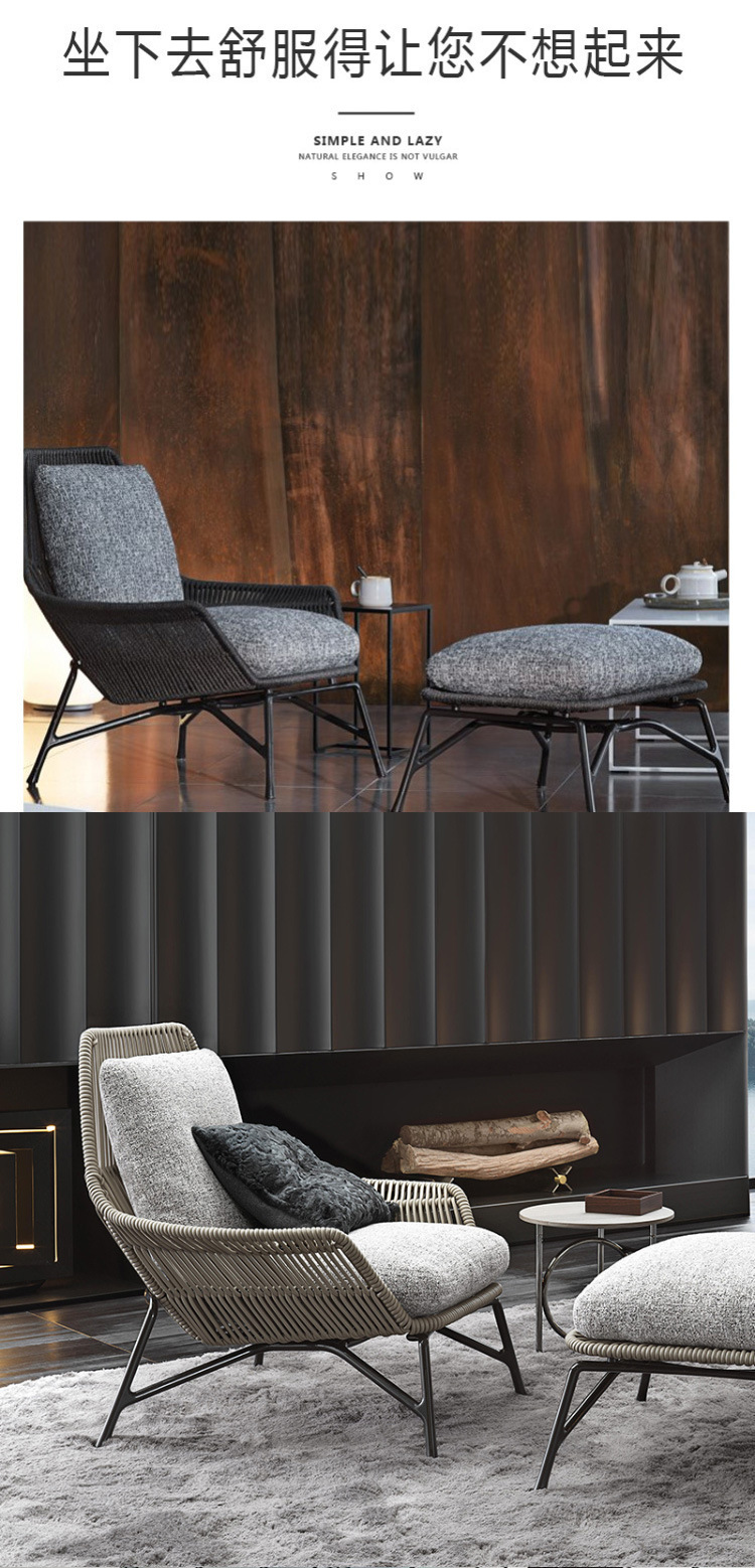 • 6026 Courtyard minimalist waterproof and sun proof rattan chair foot pedal combination