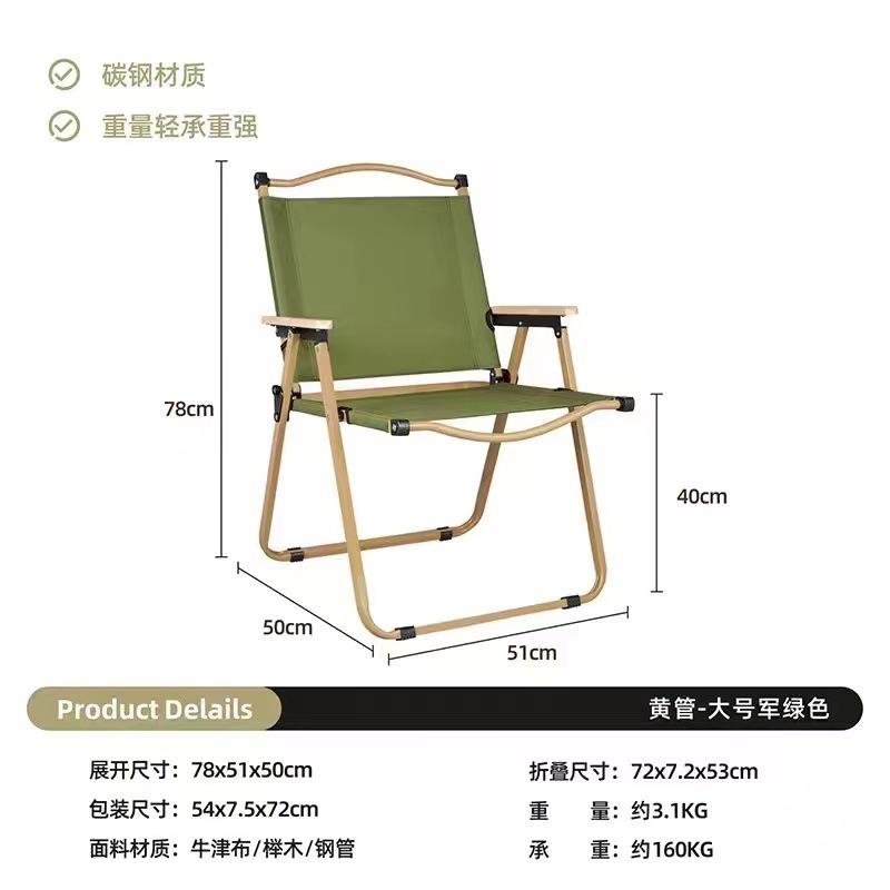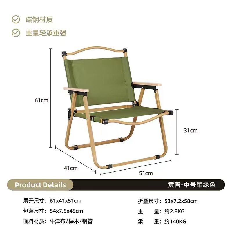 • Product description: KMIT Chair Camping Beech Armrest Carbon Steel Folding Chair