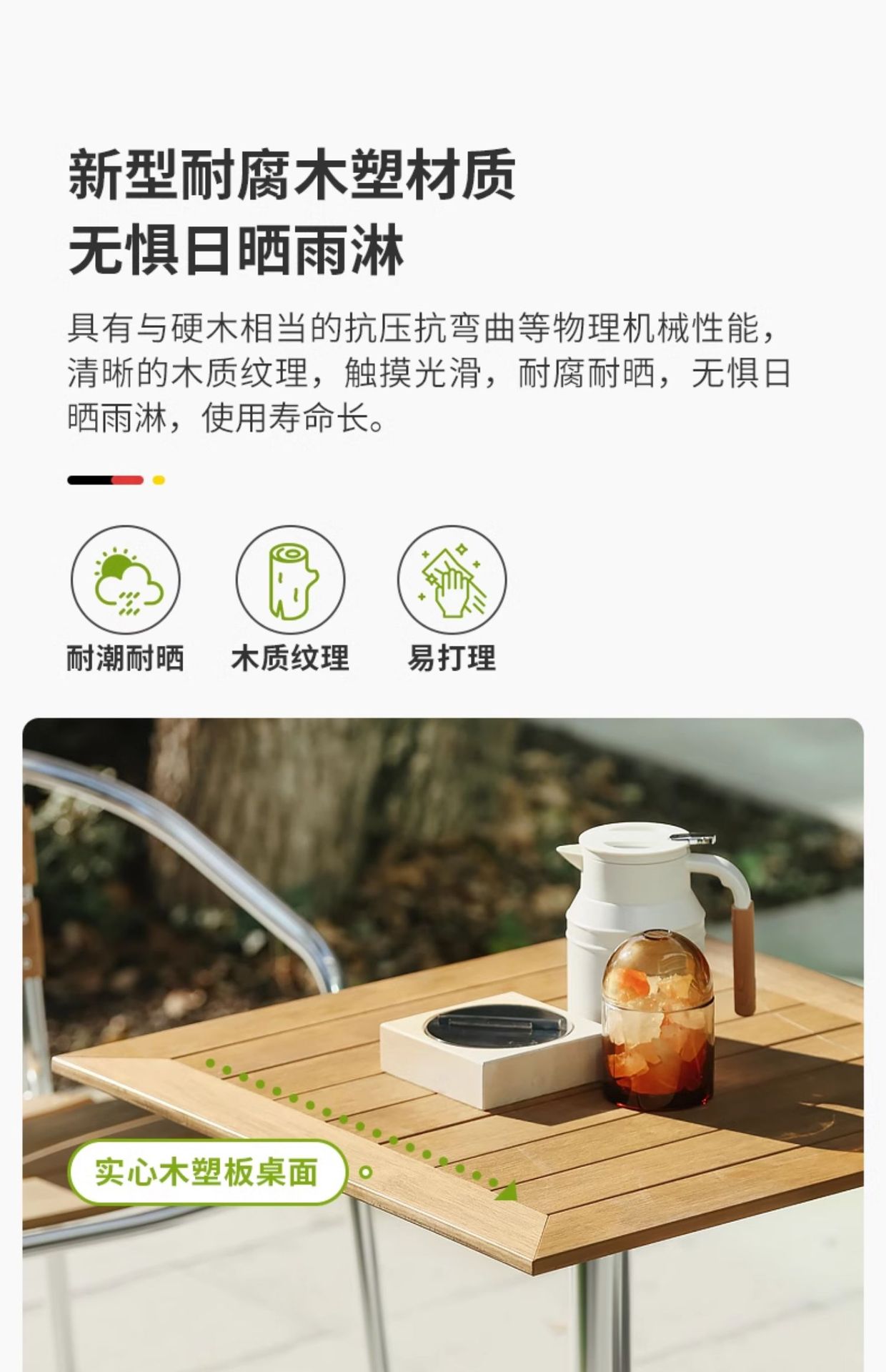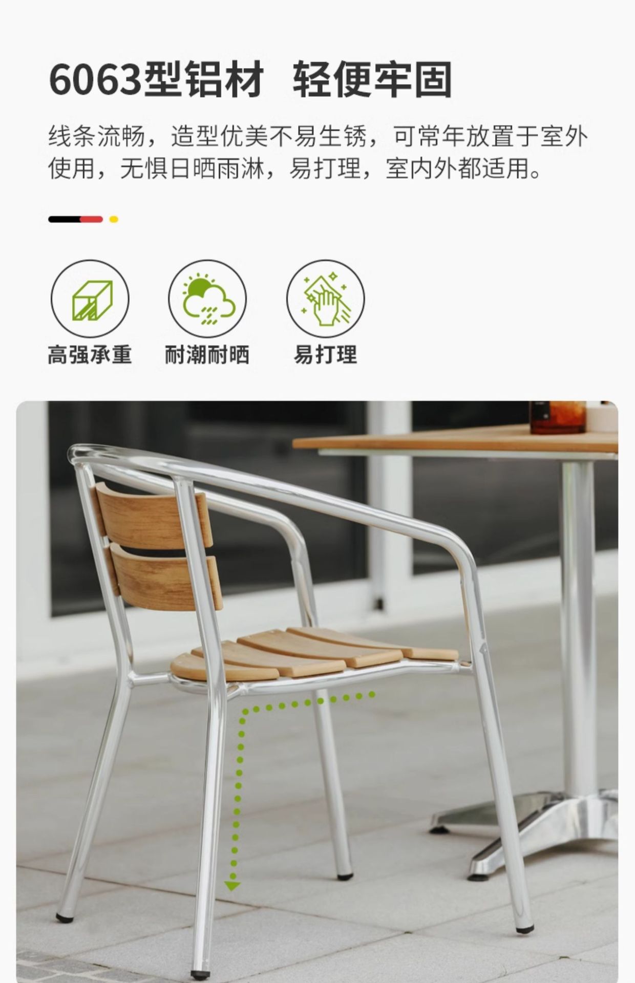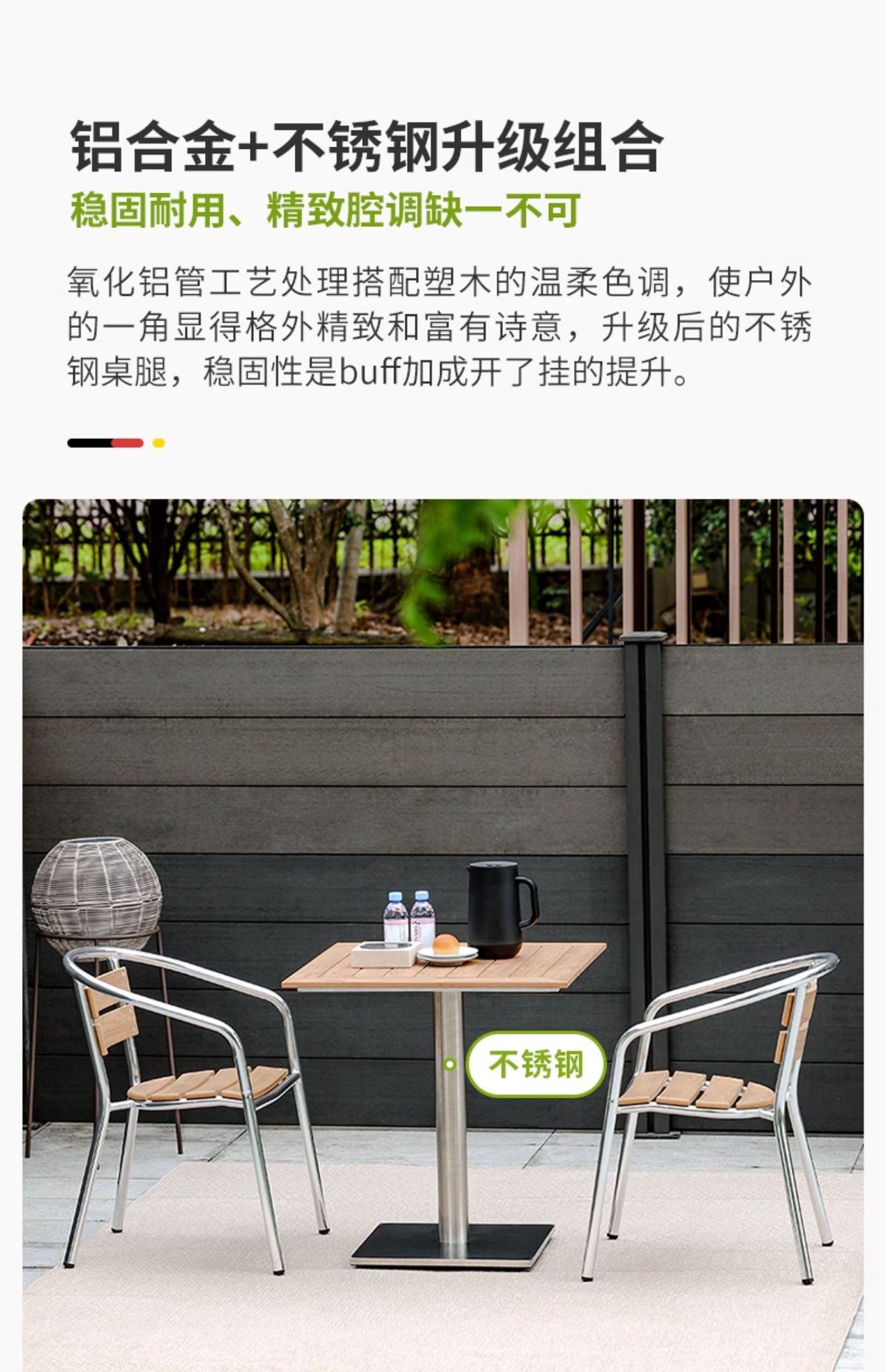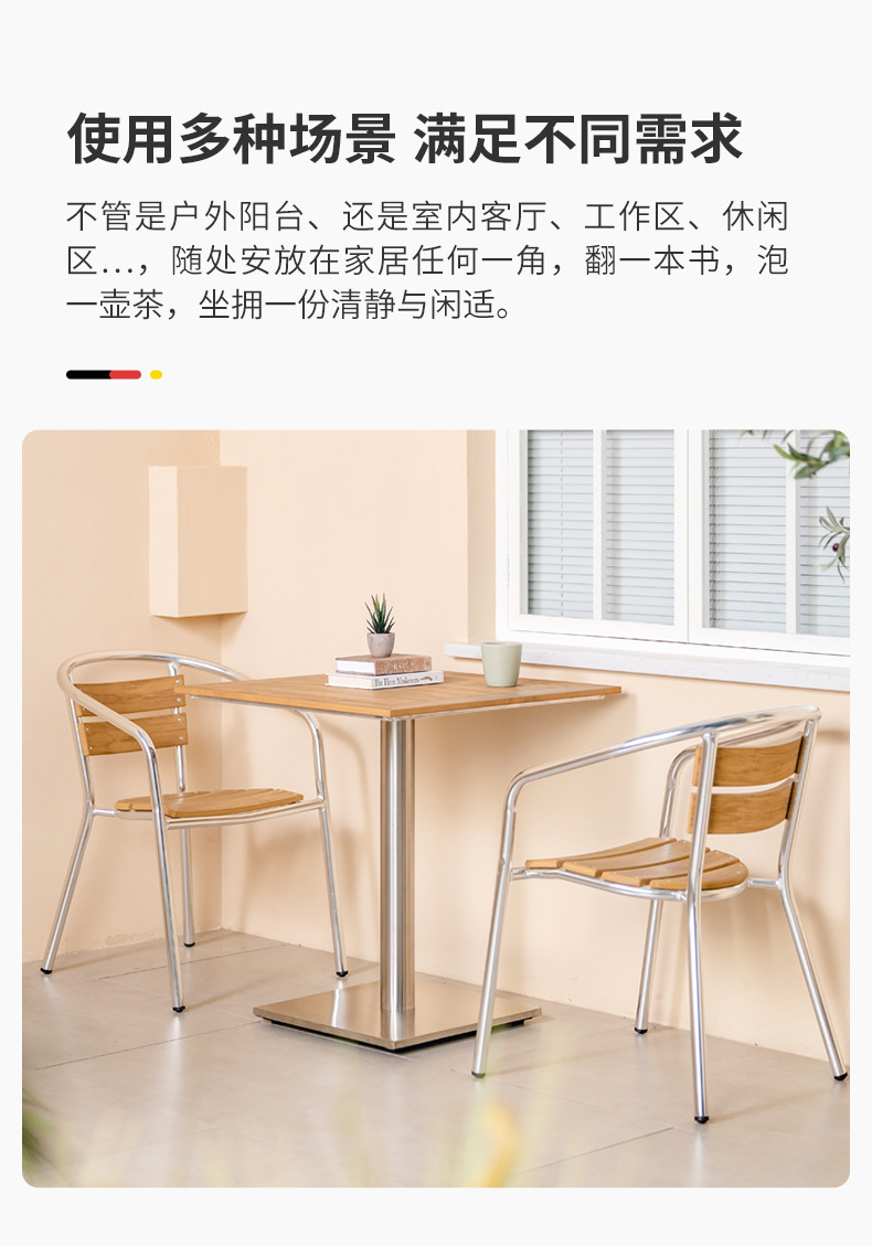 • Product description: aluminum alloy outdoor balcony leisure metal plastic wood tables and chairs