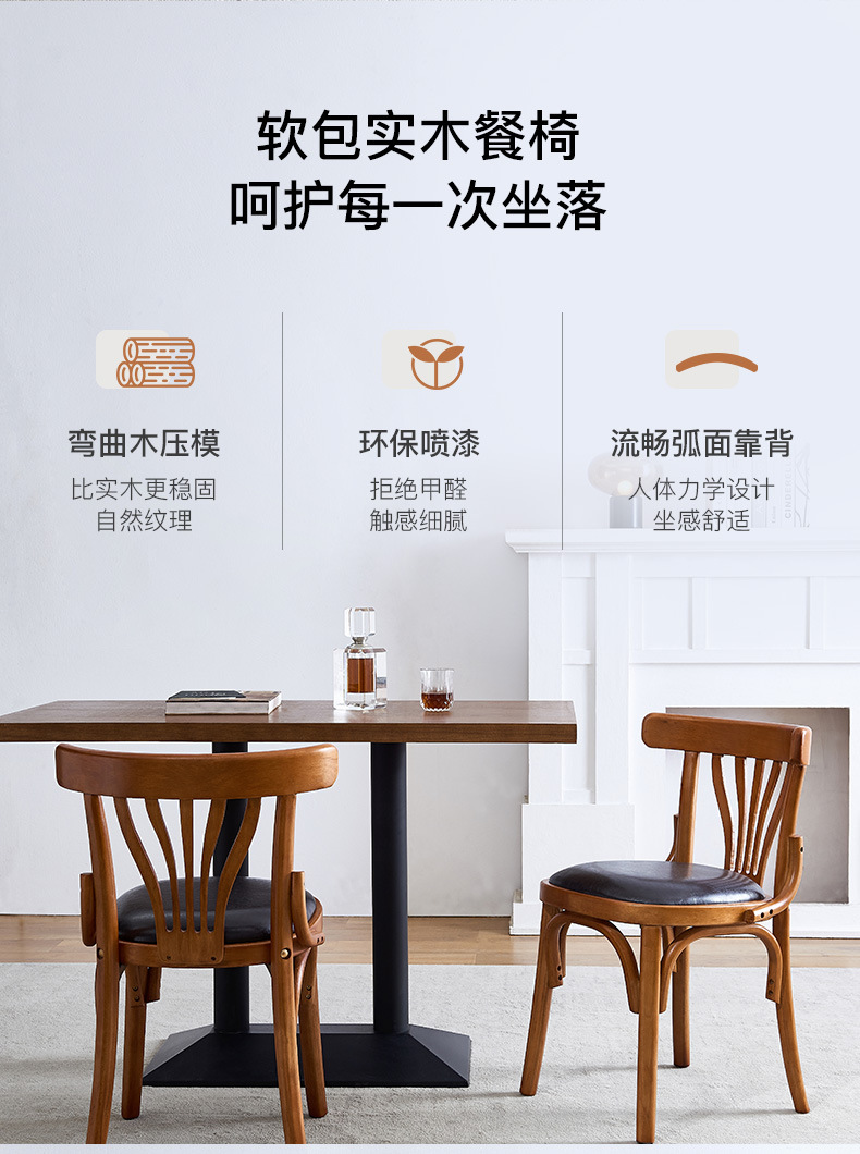 • Product description: coffee shop retro solid wood backrest dining chairs