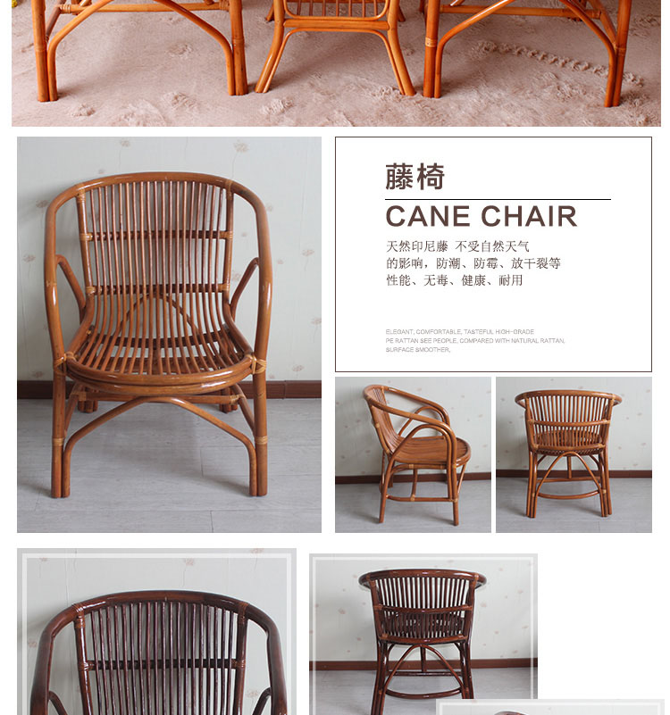 • Product description: home outdoor leisure backrest armrest natural rattan chair