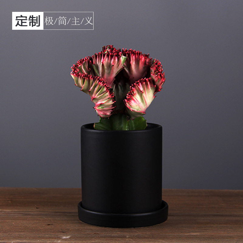 Product description: instagram large matte straight tube green plant ceramic flowerpot