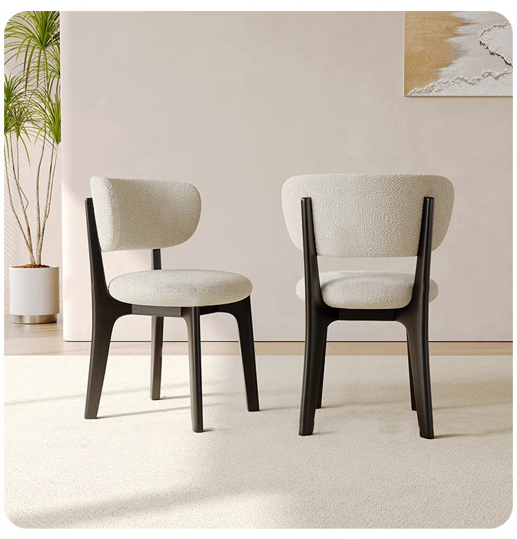 • Product description: italian minimalist cream style household white wax wood dining chairs