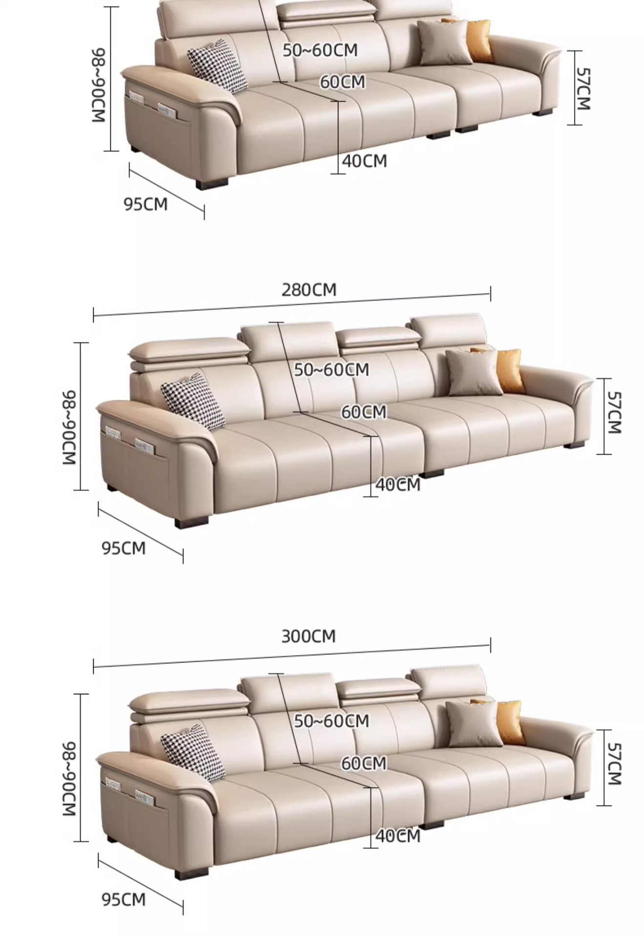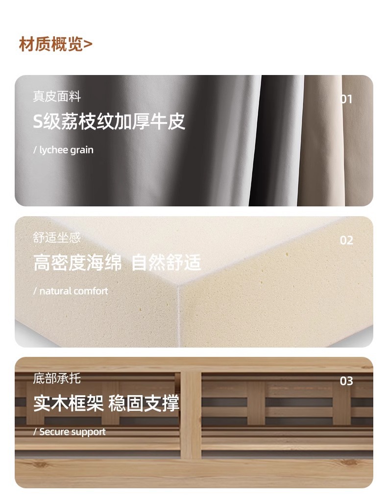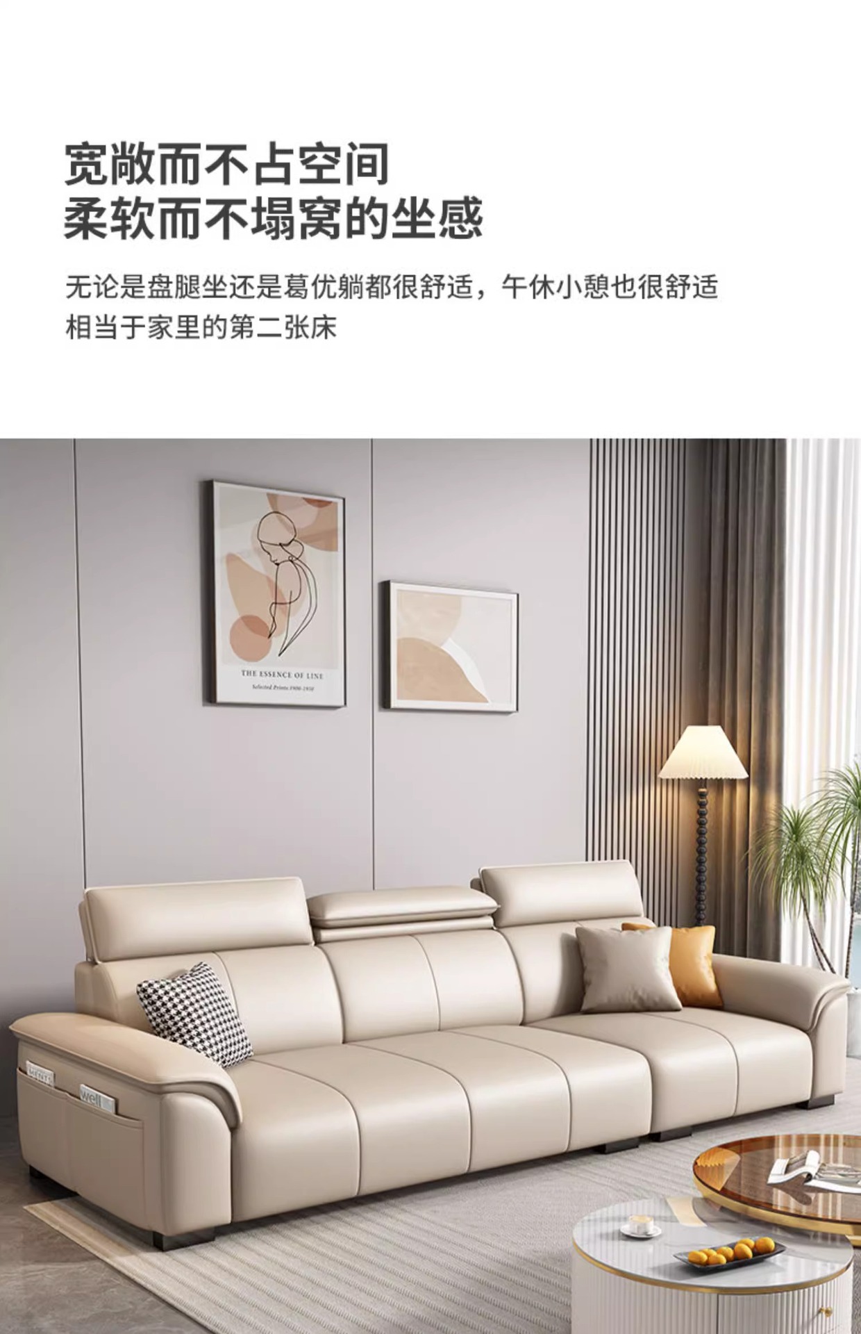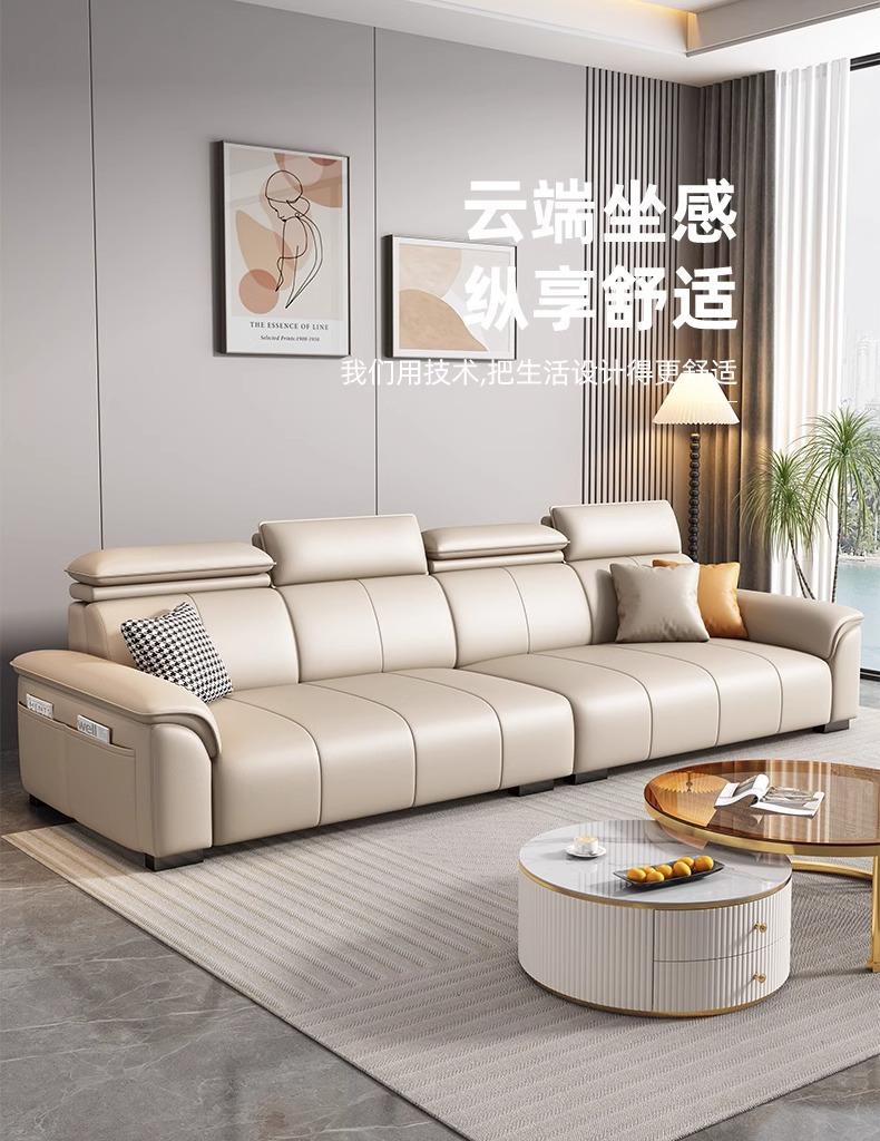 • Product description: modern minimalist family small unit straight three seater leather sofa