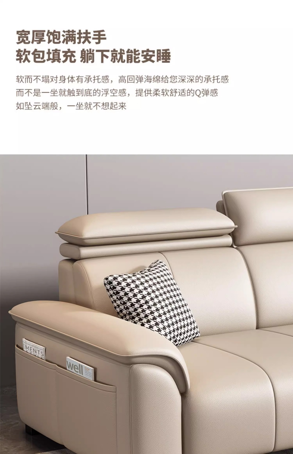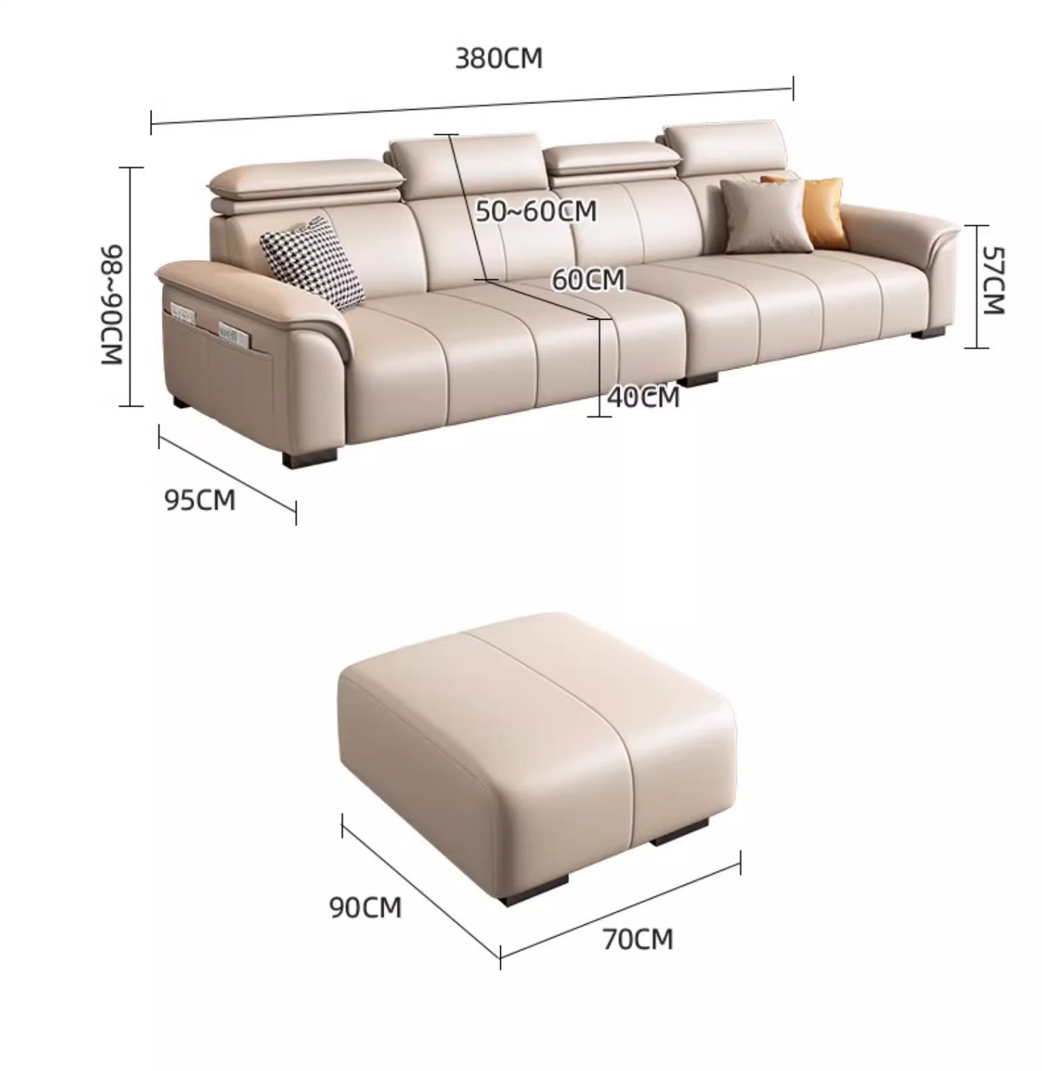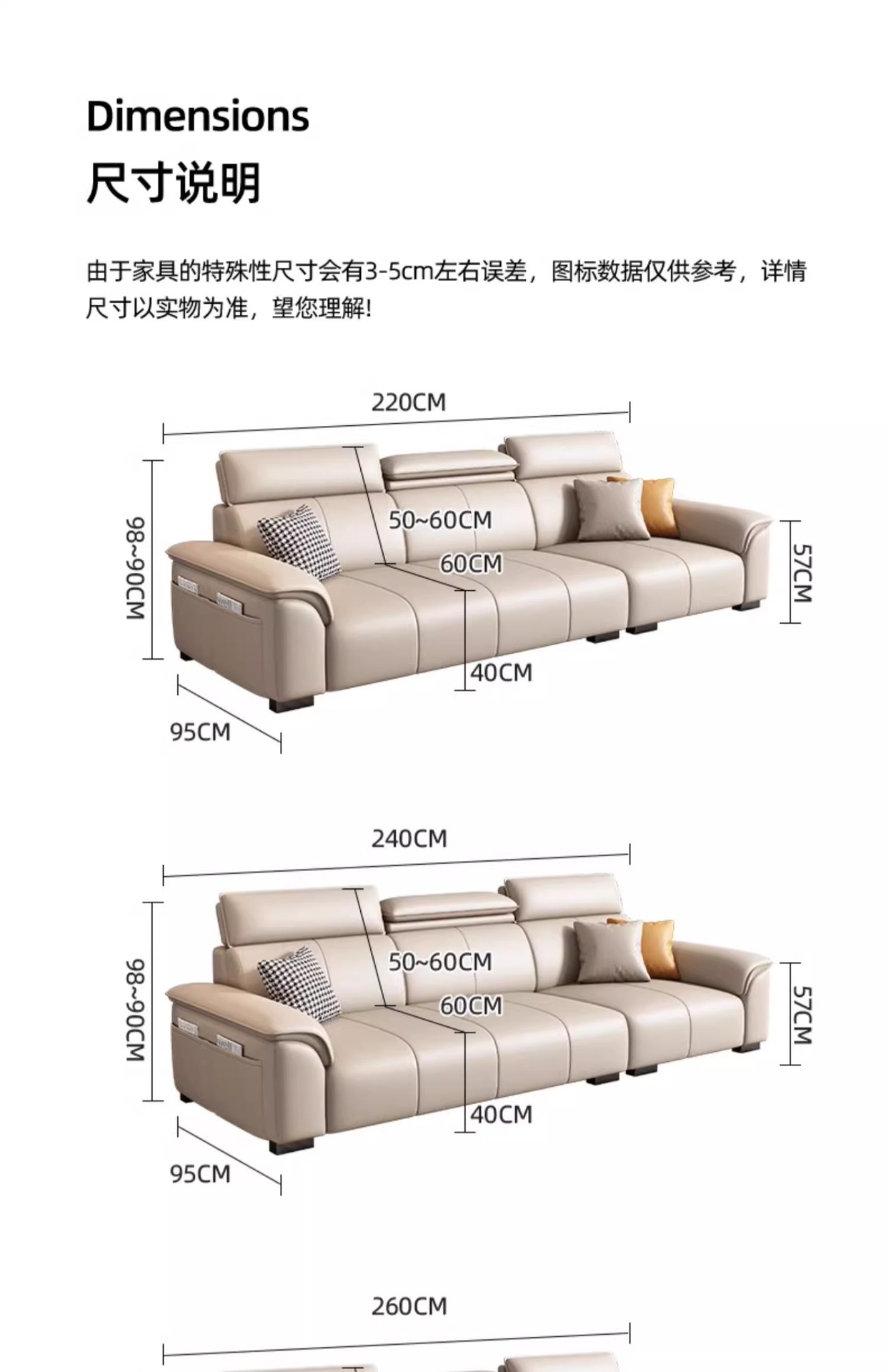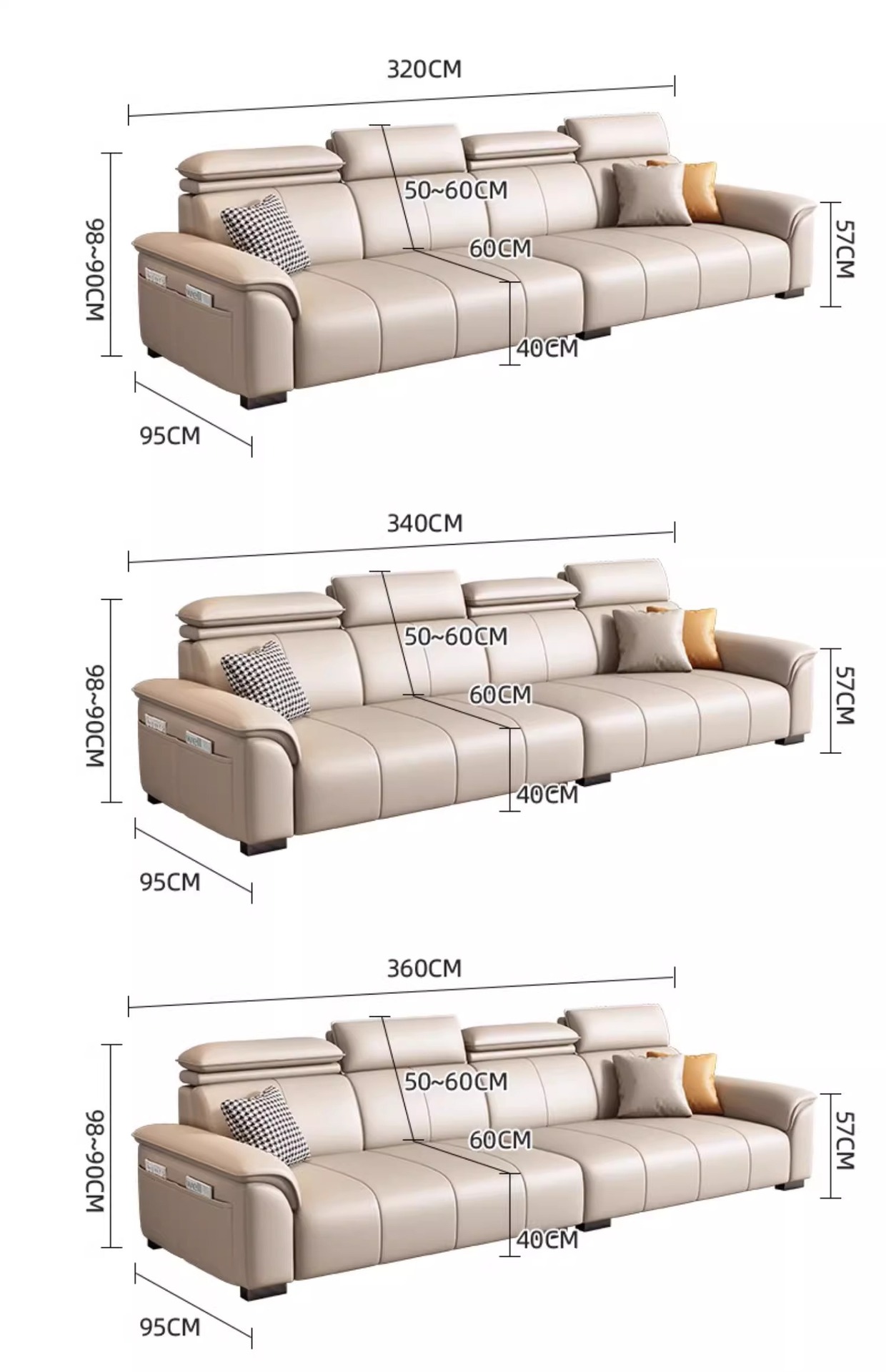 • Product description: modern minimalist family small unit straight three seater leather sofa
