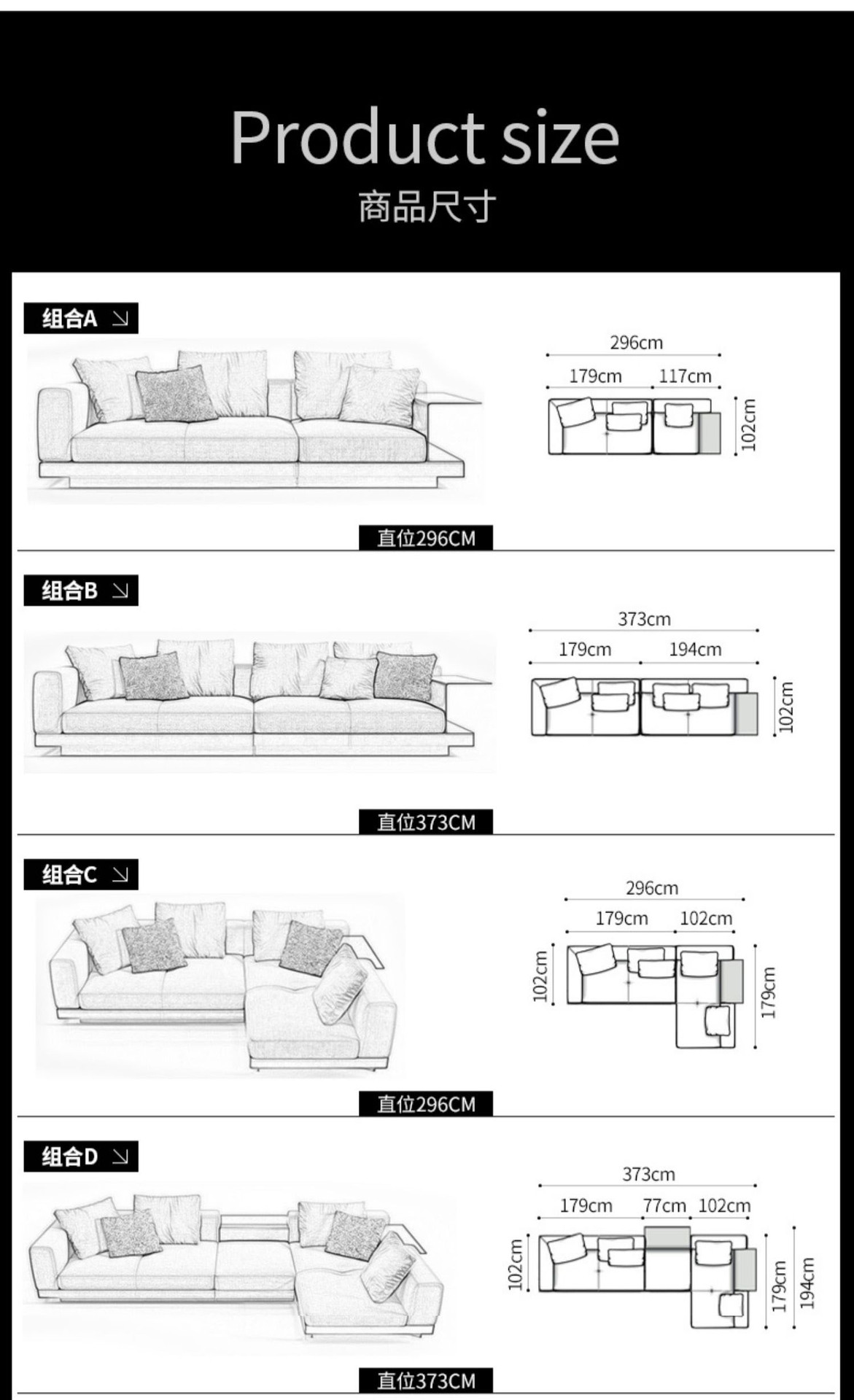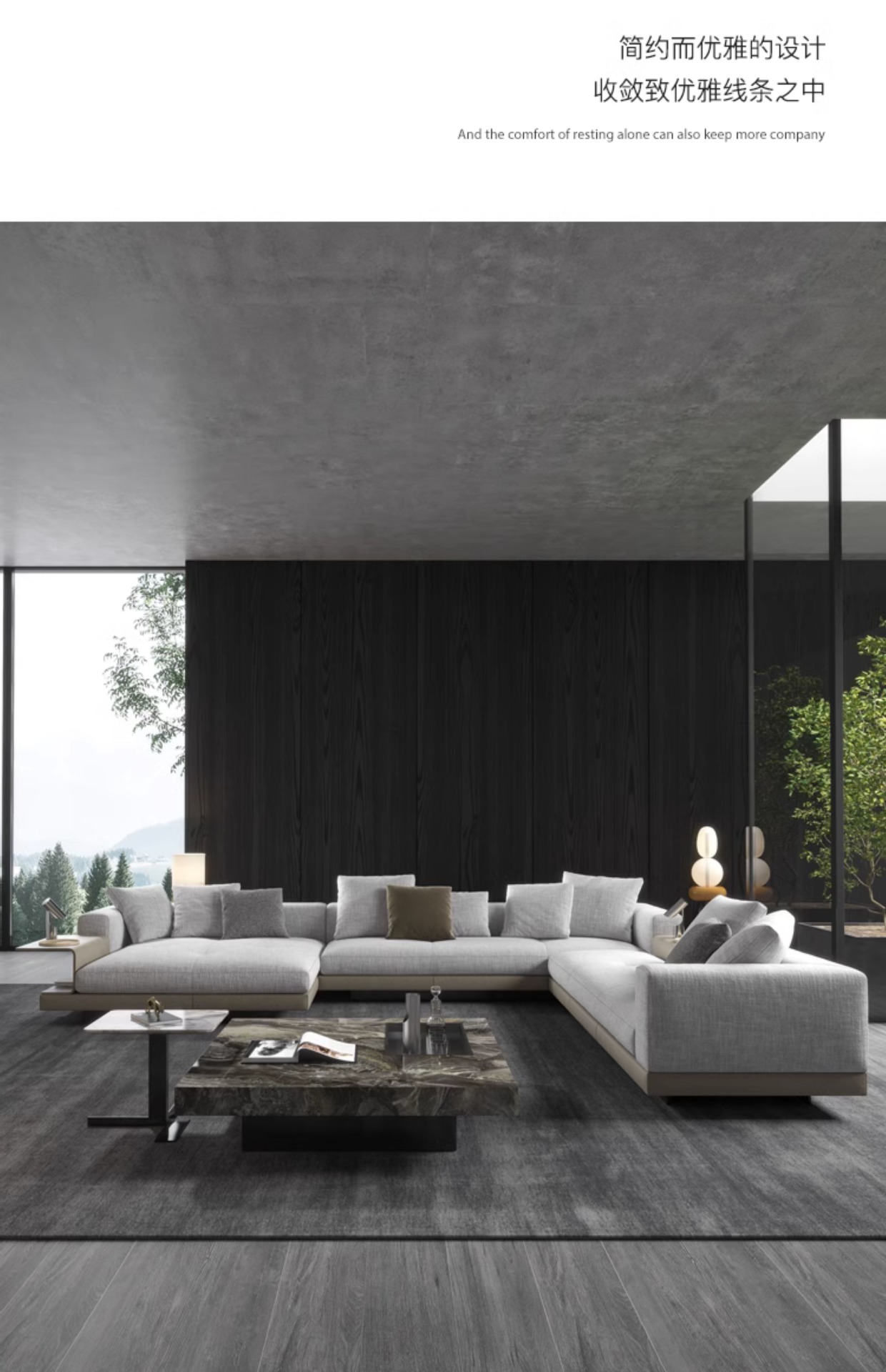 minimalist living room small unit down backrest straight lin...