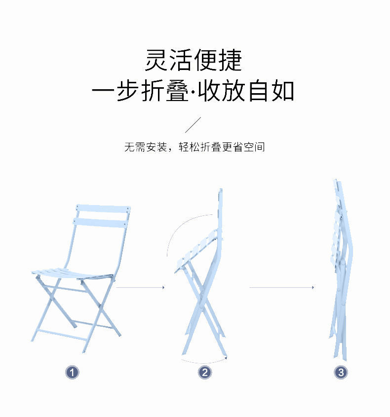 • Product description: outdoor leisure foldable small table and chair iron art three piece set combination