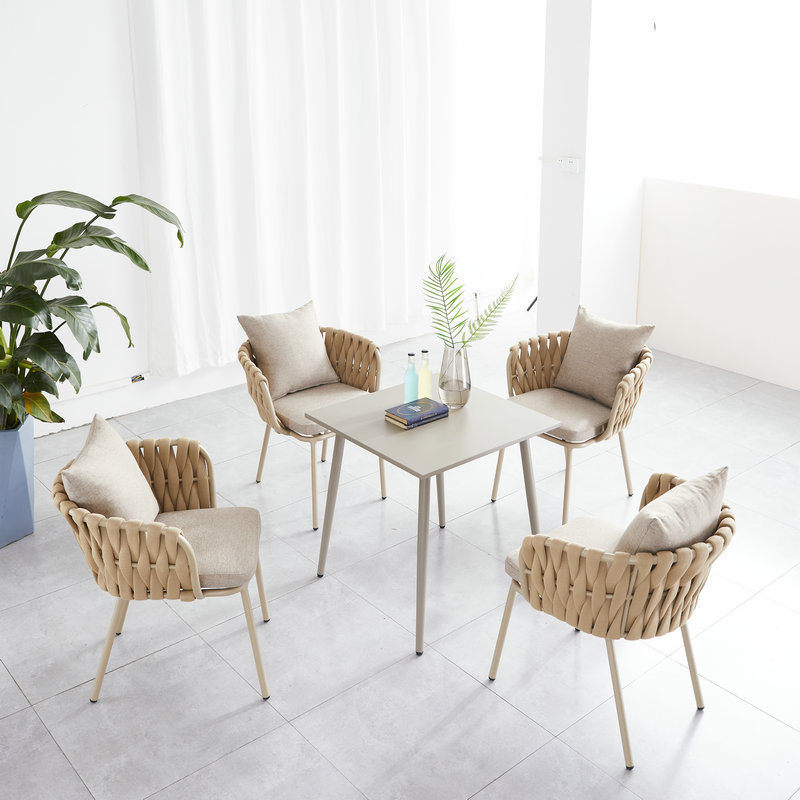 • 6009 Rope woven plastic wood leisure outdoor tables and chairs