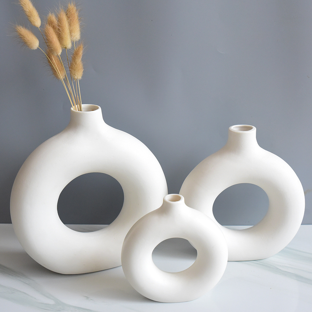 • Product description: white creative donut ceramic vase ornament